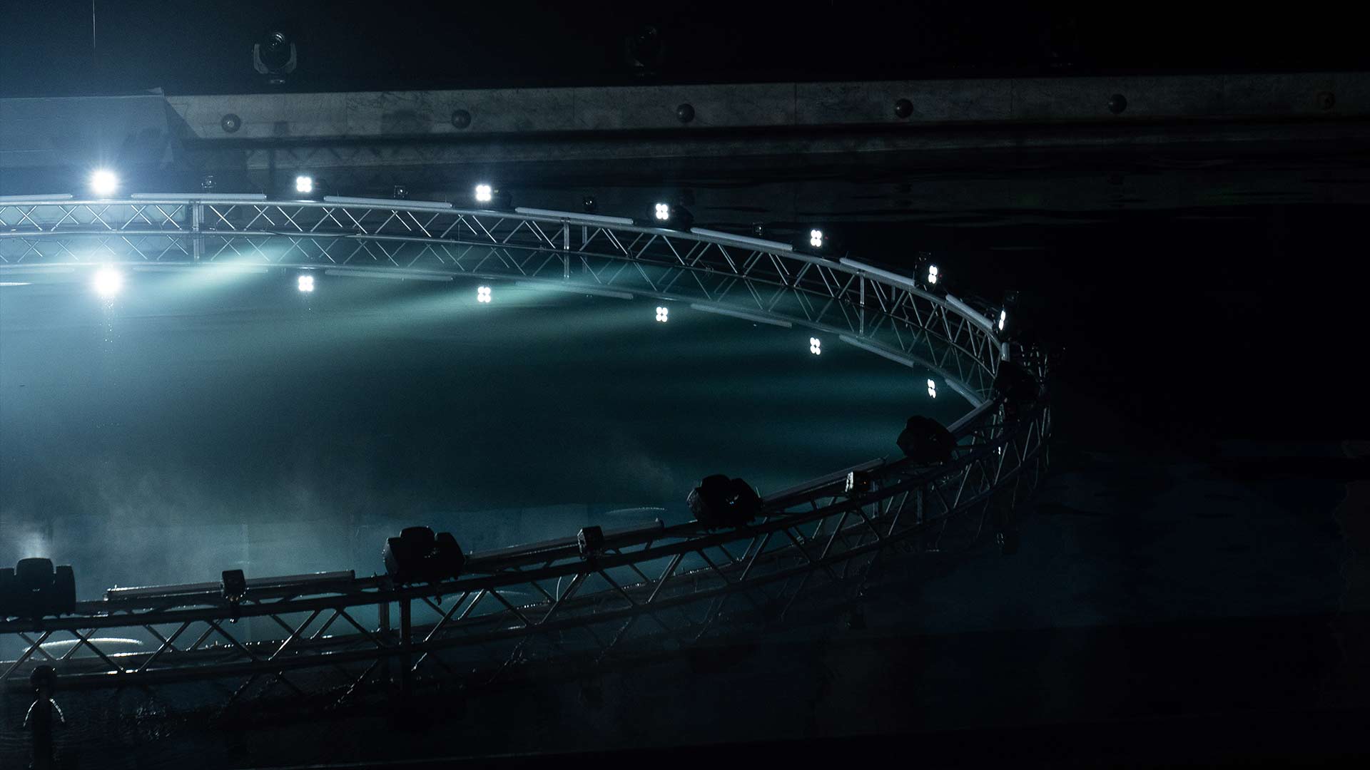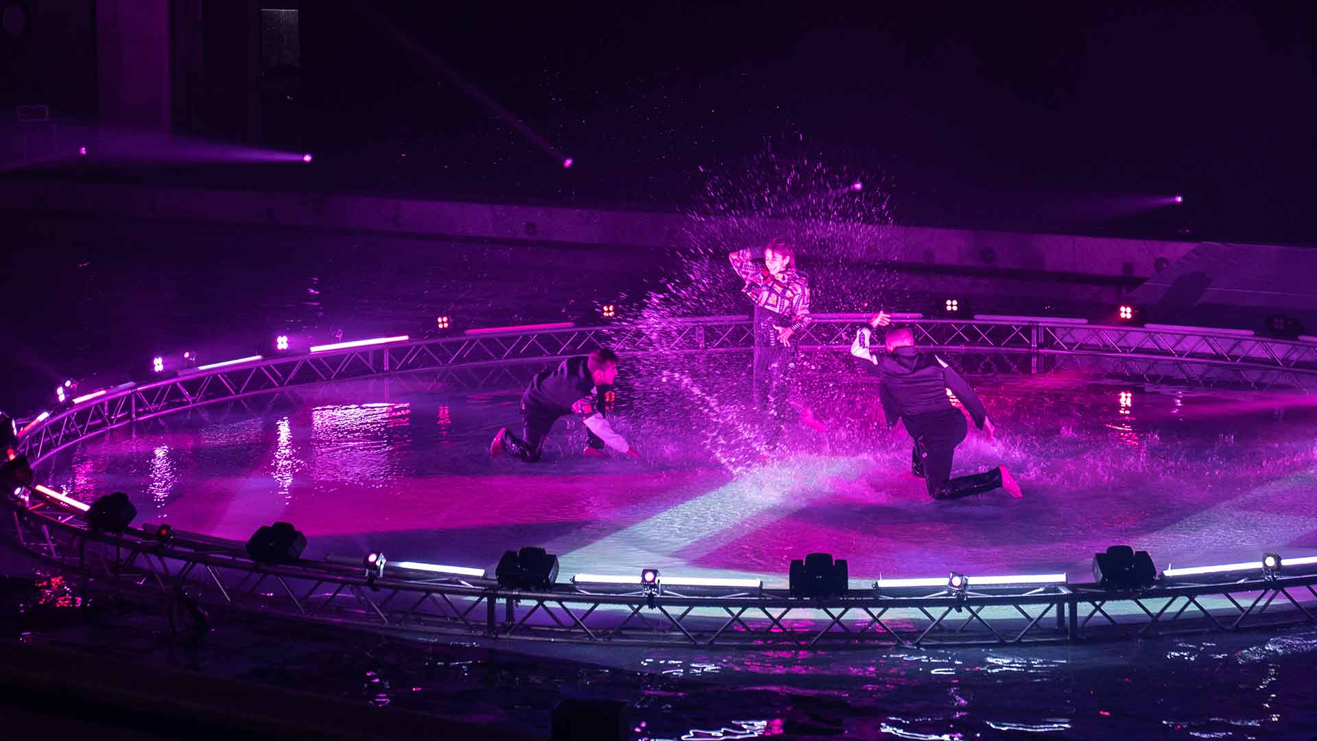 Stage Design: palco in acqua, illuminazione scenica, schermo d’acqua, area backstage artisti. Per l'impianto di nebulizzazione dell'acqua sul palco ringraziamo Termar 3000, nostro partner tecnico che ci ha permesso di aggiungere un effetto particolarmente suggestivo molto apprezzato dal pubblico.