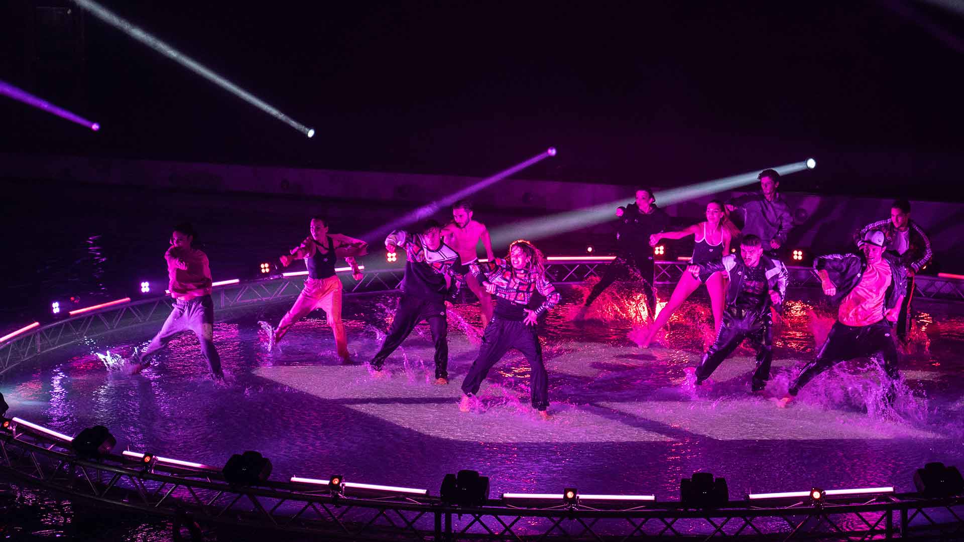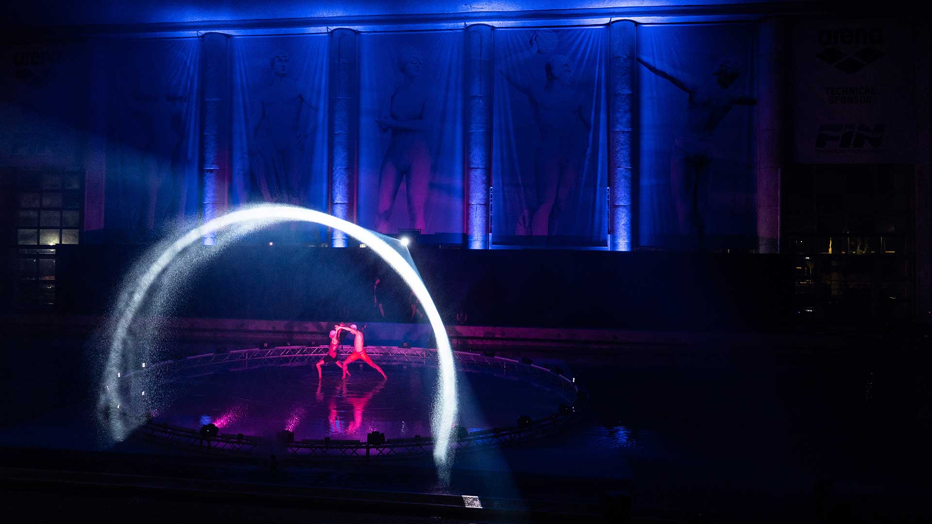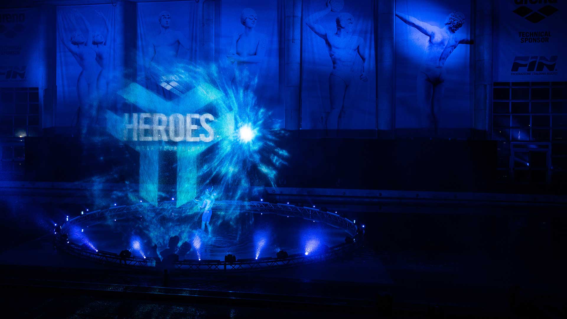 Sede del nostro show è la Piscina dei Mosaici, un’icona del nuoto italiano all’interno del Foro Italico di Roma. La sfida è stata realizzare un palco interamente in acqua per i nostri danzatori, aggiungendo interventi artistici coordinati di atleti provenienti dalla nazionale di nuoto sincronizzato e di tuffo da trampolino.